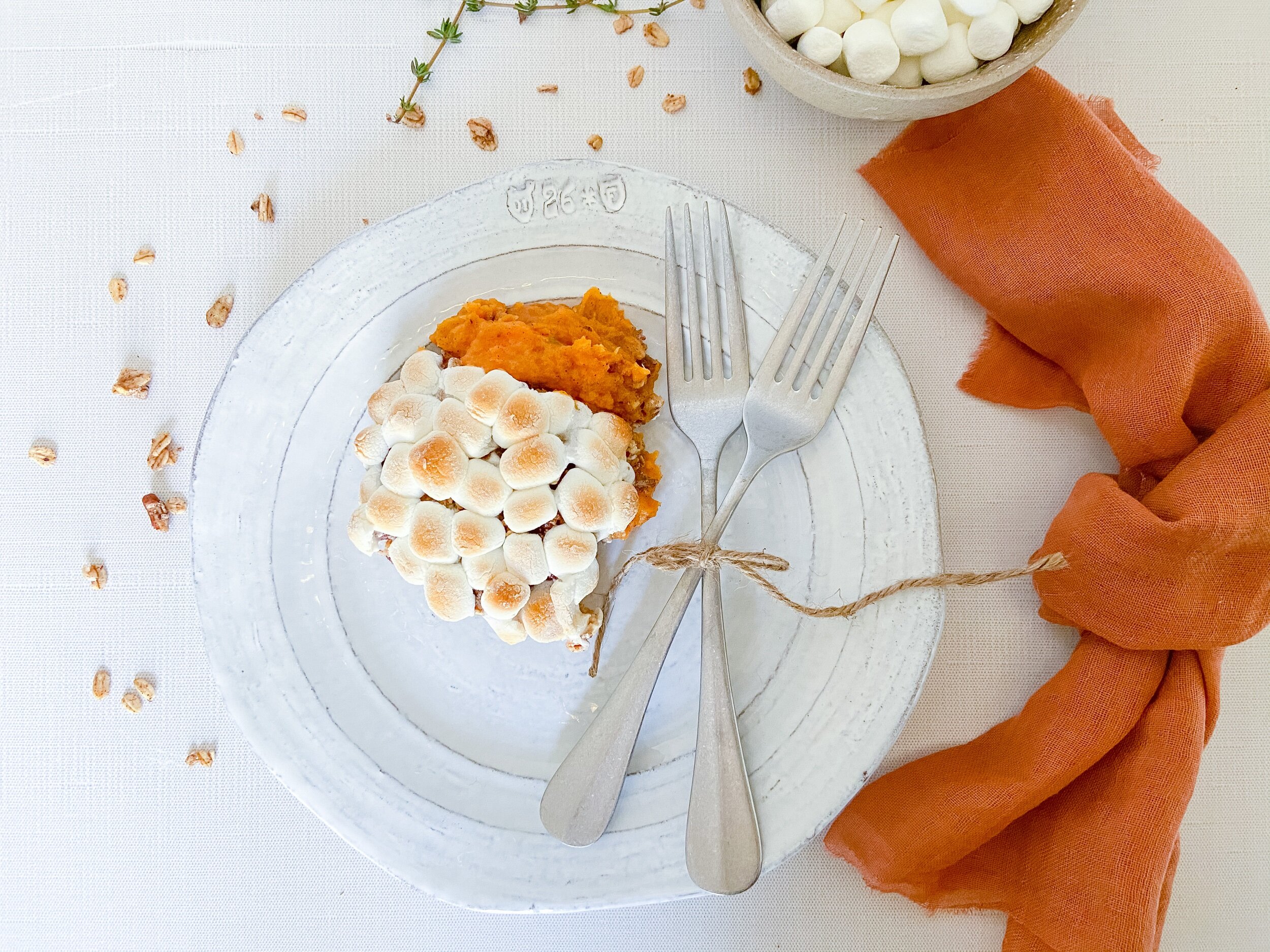 Cover the casserole with an even layer of mini marshmallows, and place under the broiler until the tops of the marshmallows are toasted.